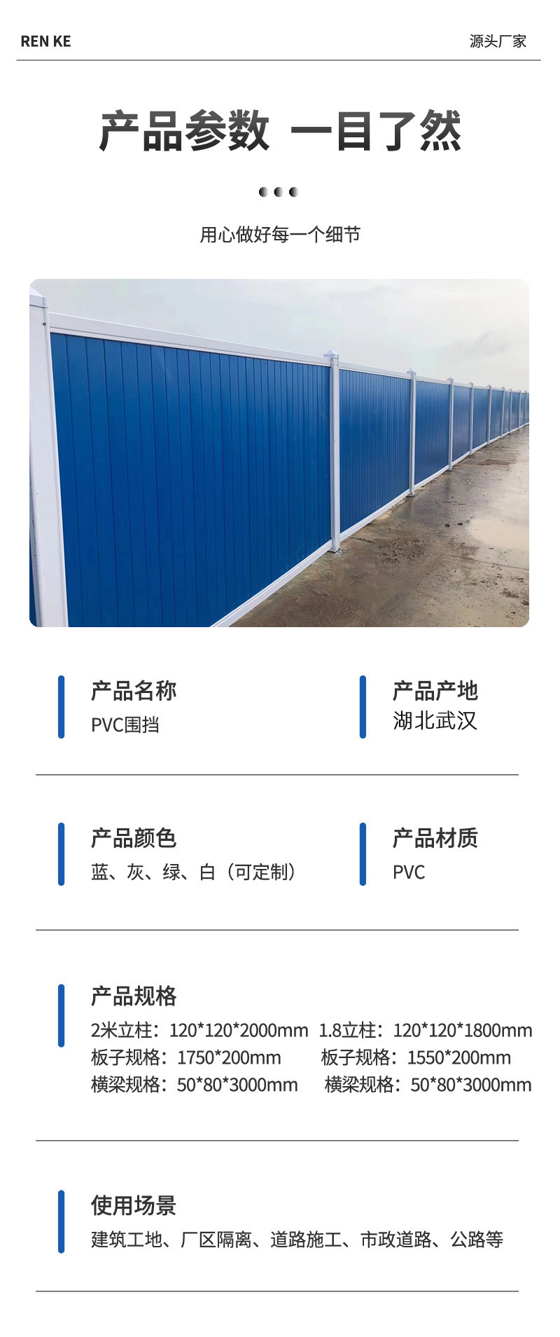pvc圍擋護欄施工圍擋建筑隔離圍擋現貨廠家道路工地工程防護圍欄